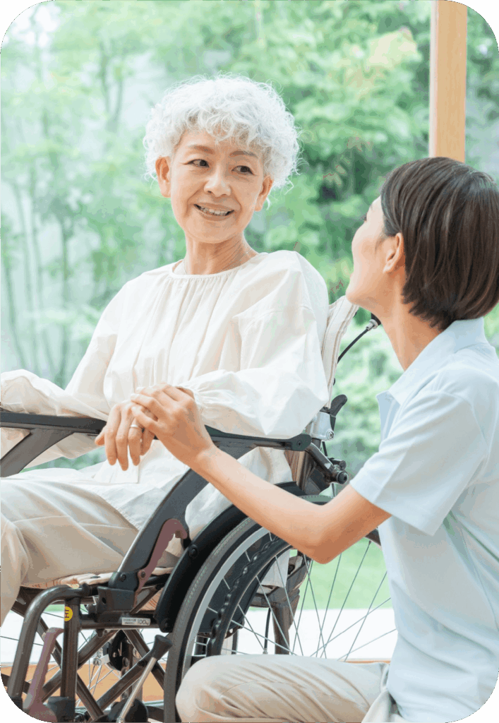 ホームヘルパーがご自宅を訪問し、日常生活をサポートします。 身体介護(入浴・排泄・食事の介助)、生活援助(掃除・洗濯・調理)、通院等の乗降介助、ガイドヘルプに対応しています。